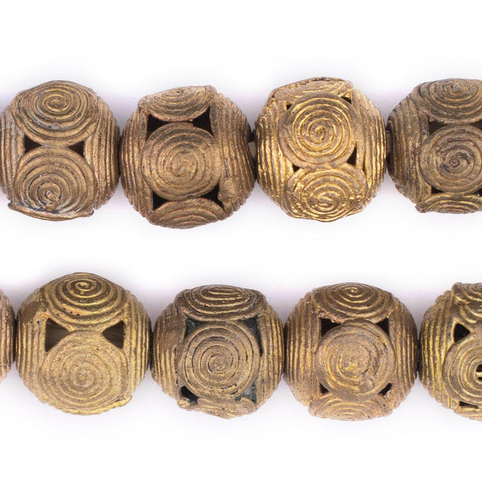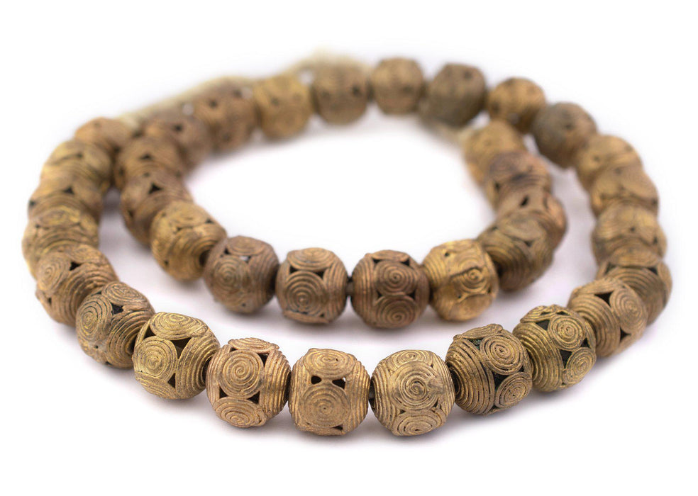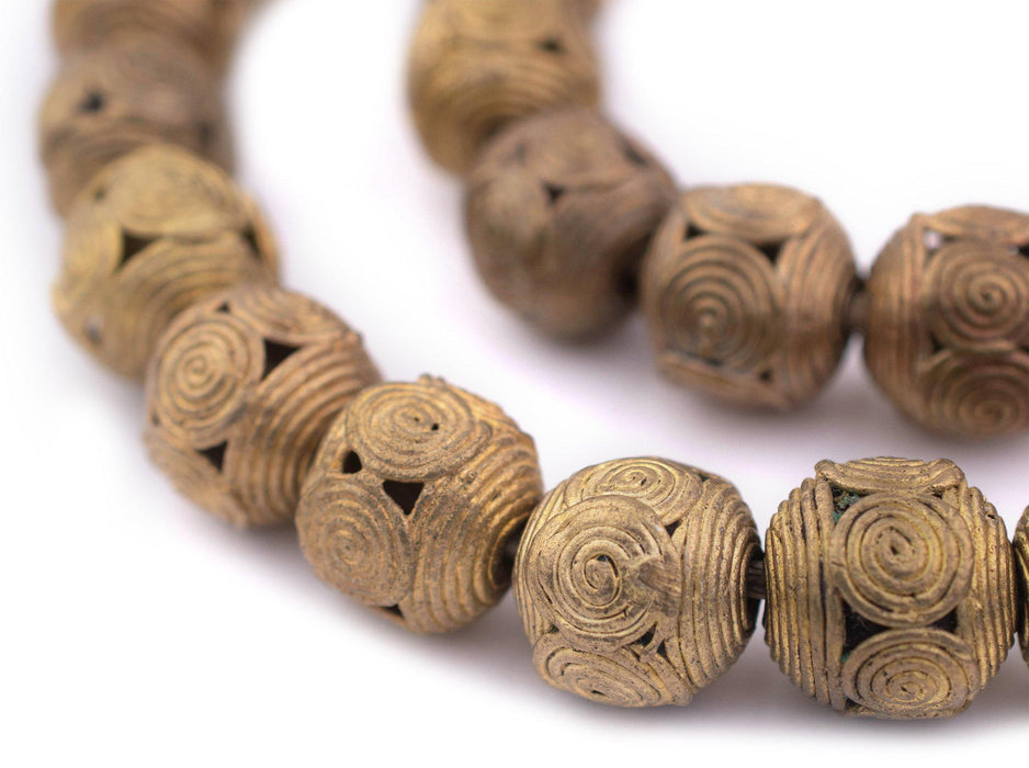 Cameroon-Style Ghana Brass Filigree Globe Beads (18mm, Long Strand)