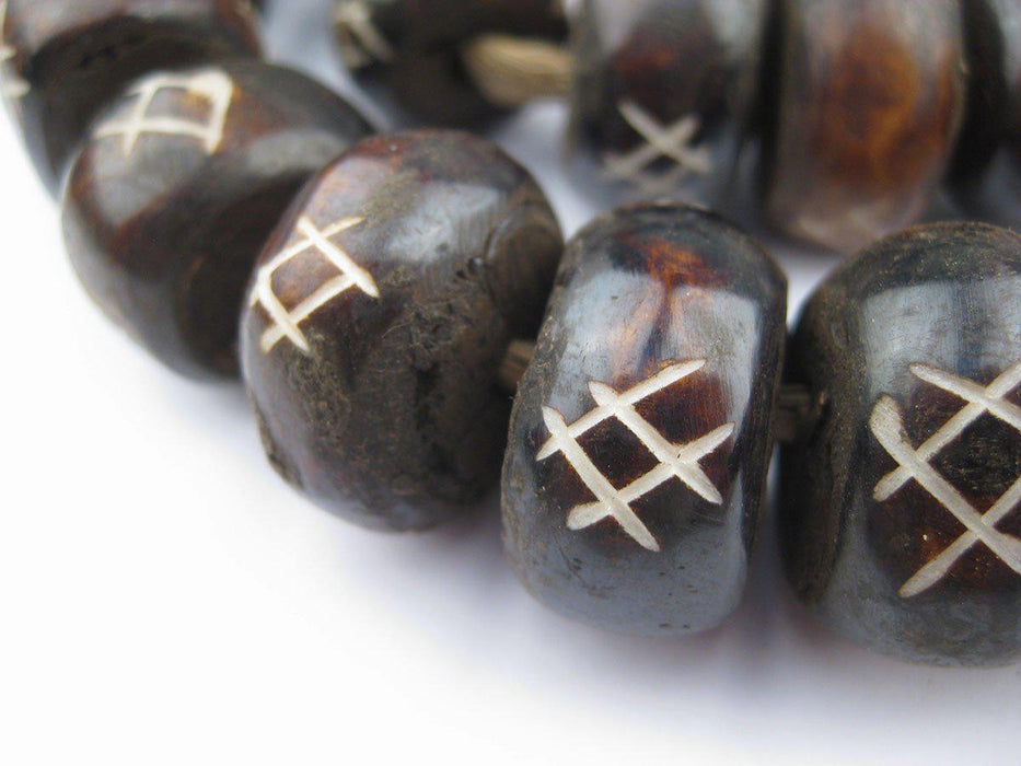 Tic-Tac-Toe Carved Brown Bone Beads (Large)