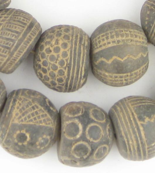 This beautiful strand of Mali Spindle Whorl beads is handmade with clay and individually inscribed. It is made by the Dogon tribe of Mali. This is an unusual one-of-a-kind antique strand. Each strand is unique and will be similar to strands shown but may vary slightly in pattern on beads. Supplemental shipping charges may apply for some international shipping destinations. Please inquire in advance if you are an international buyer.