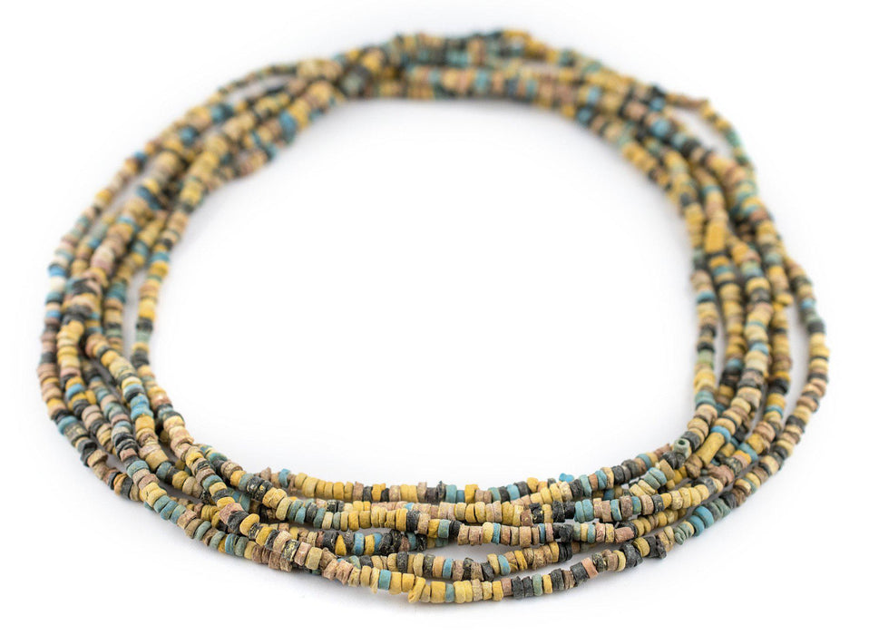 Admire these beautiful beads sometimes referred to as pharaonic pottery beads. Handmade by skilled artisans in the North African country of Egypt, the texture of these beads is reminiscent of an artifact hidden by the sands of time. Each strand is extra long making this a great value. Beads measure approximately 1-3 x 3-4mm with a hole size of approximately 1mm. Multiple strands may be pictured. Each strand sold individually. Get yours today!