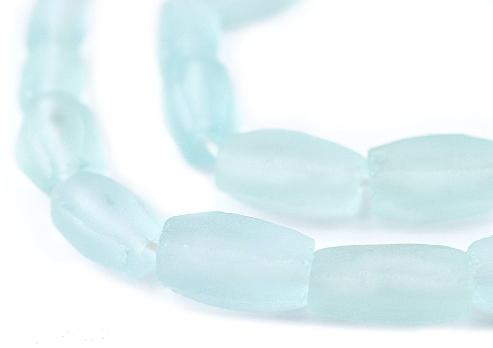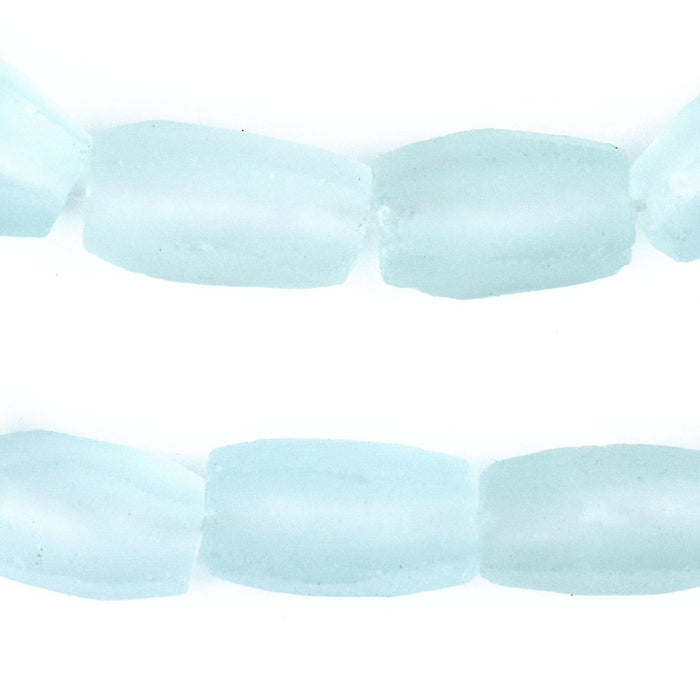 Clear Aqua Faceted Cylinder Java Recycled Glass Beads (20x12mm)