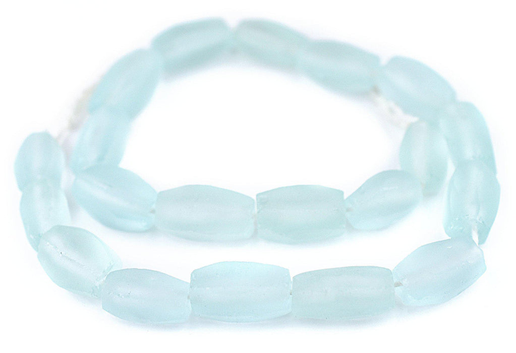 Beautiful strand of clear recycled glass beads from the island of Java. These frosted beads have been fashioned in a faceted shape and come in a natural matte finish. Each bead measures approximately 19-22 x 11-12mm, with a hole size of approximately 2mm. Unique translucence let's light pass through. Available in a variety of shapes. Pick and choose and your favorite colors!