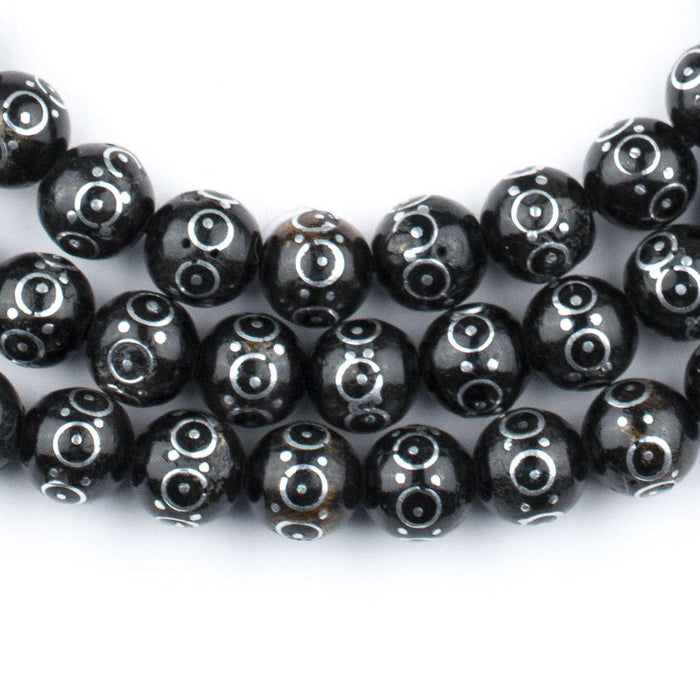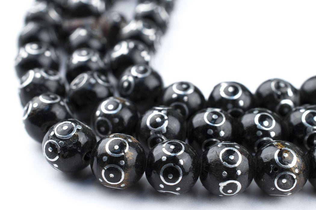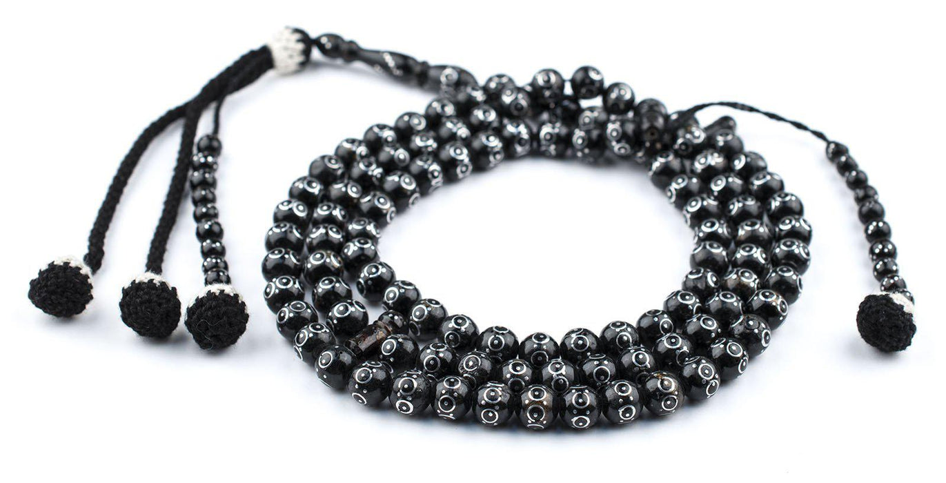 Round Eye Silver Inlaid Black Coral Arabian Prayer Beads (8mm)