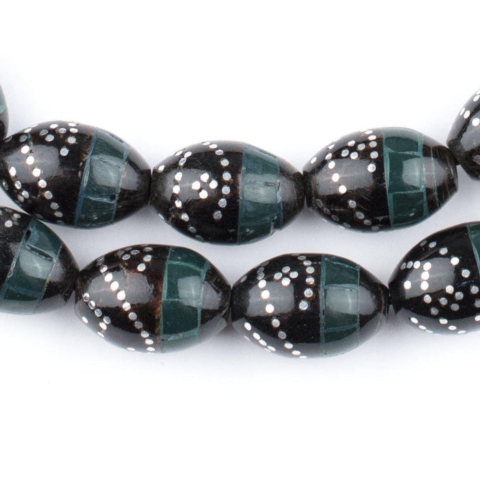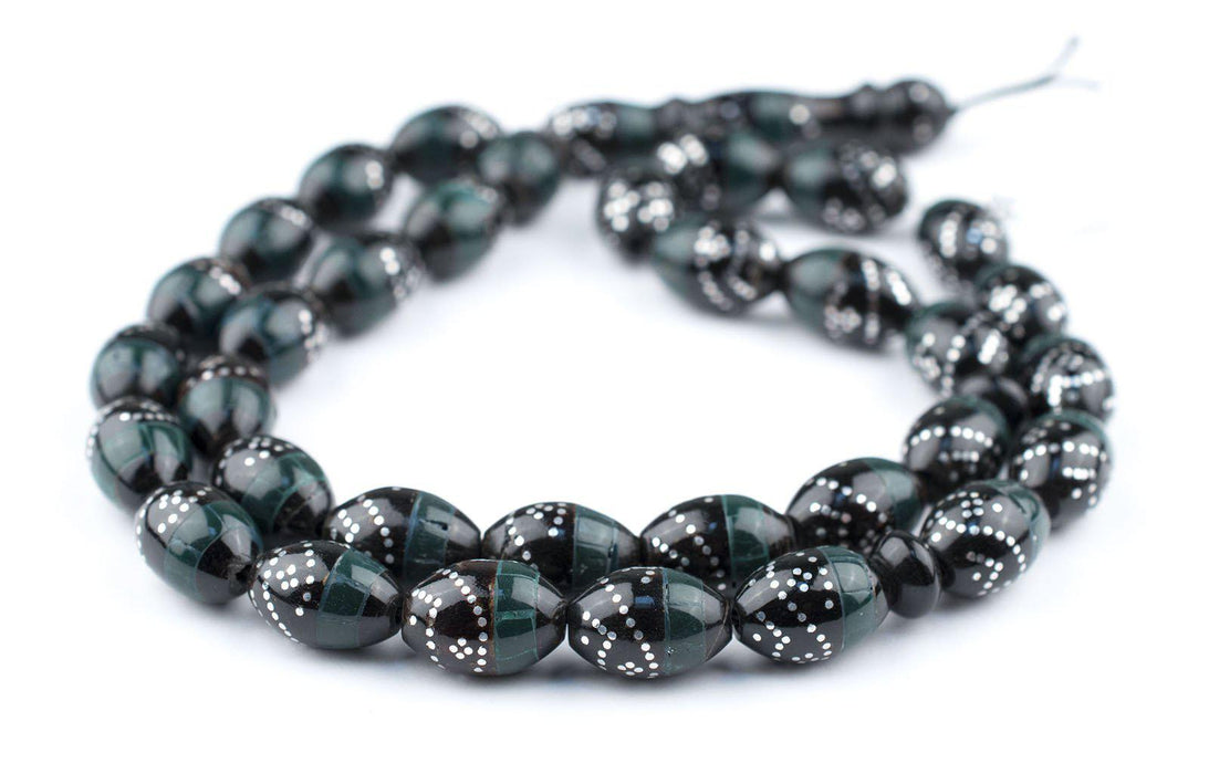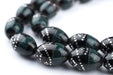 Serpentine Green & Silver Inlaid Black Coral Arabian Prayer Beads