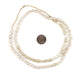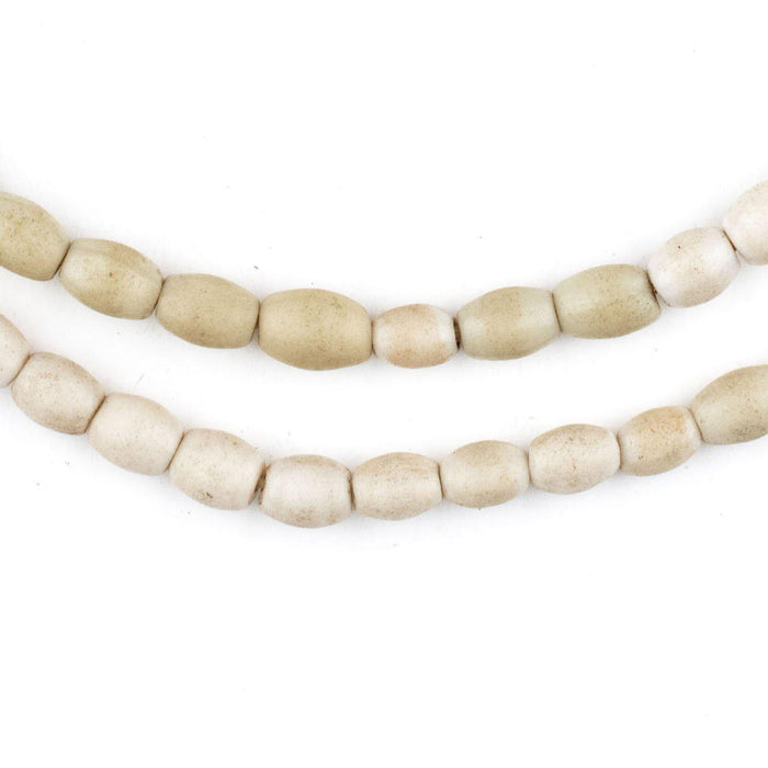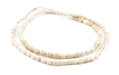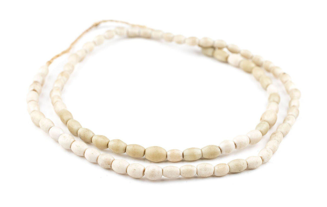 These vintage white glass beads were originally produced in Czechoslovakia and sent to West Africa in the mid-20th century. Crafted in an oval shape, similar to the grain of rice, they are often referred to as "rice beads." Due to their vintage nature, they are becoming increasingly difficult to find. Each bead measures approximately 7 x 6mm with a hole size of 1mm. Strands measure approximately 26". Limited supply available. Get yours today!