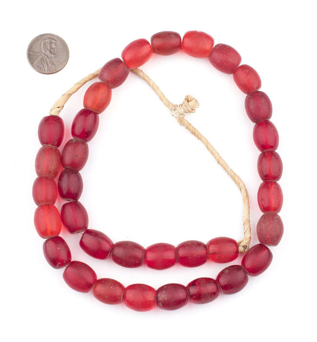 Old Bohemian Glass Red Oval Beads (14x12mm)