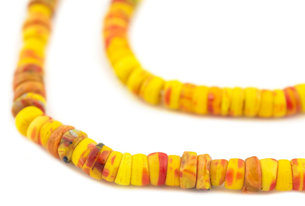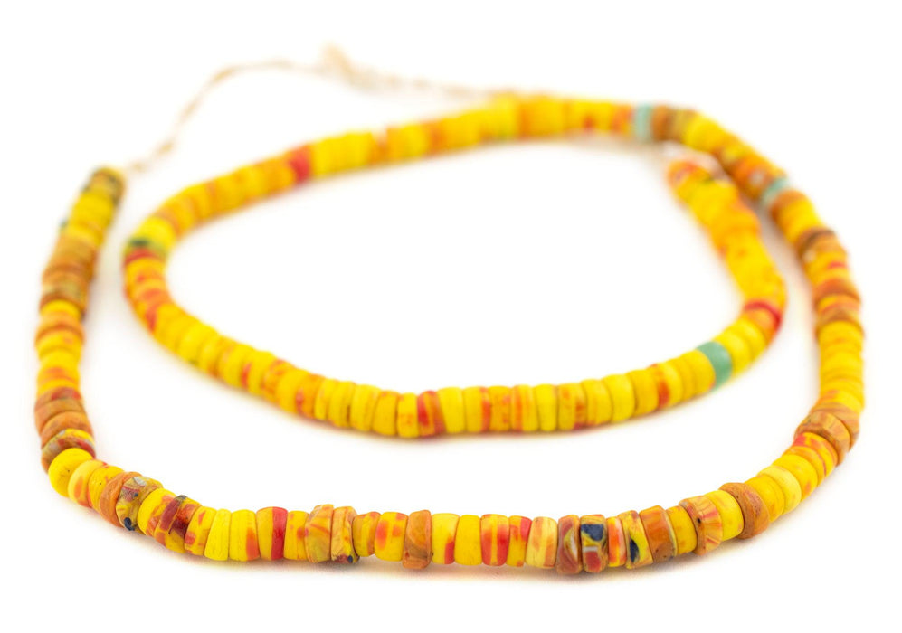 The unique look of kakamba beads is easily recognized among the beads of Africa. Originally produced in former Czechoslovakia, these beads are made using a special process whereby glass is pressed in a mold. Also known as prosser beads, these fun vintage African trade beads come in a variety of different colors and combinations. Each strand is unique. You will receive the exact strand shown in the photo. Bead and strand dimensions are approximate and may vary slightly. Get yours today!