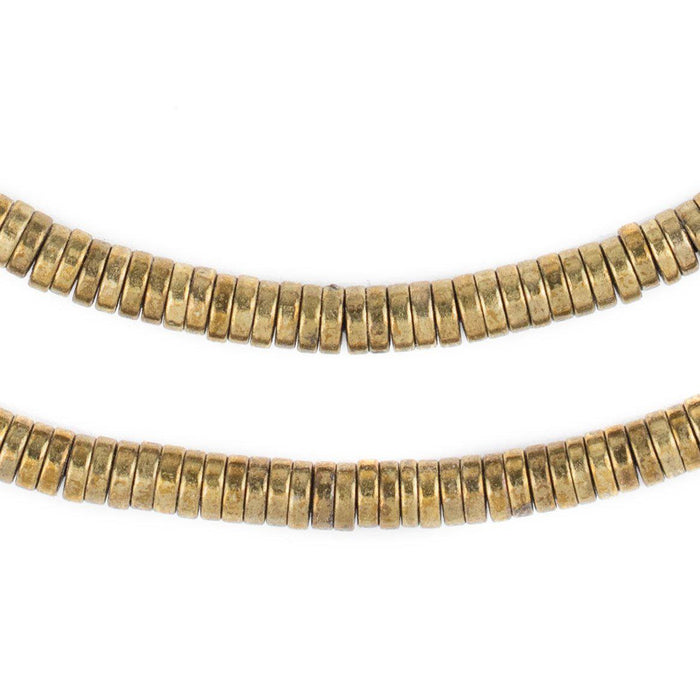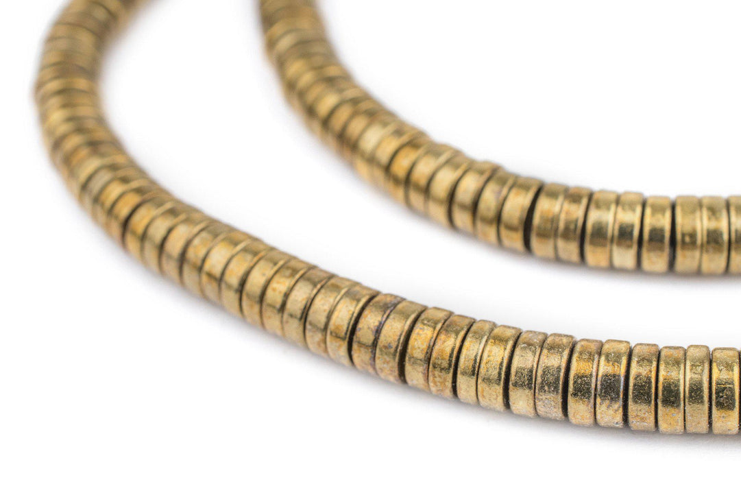Take a look at this great strand of brass beads fashioned in a disk shape. Each strand is 16" inches long with approximately 200 beads measuring 2 x 6mm. These great beads are highly versatile and may be used as spacers or accents in your unique designs. A great addition to your beading toolkit! Multiple strands pictured. Each strand sold individually. Shade may vary slightly from photo.