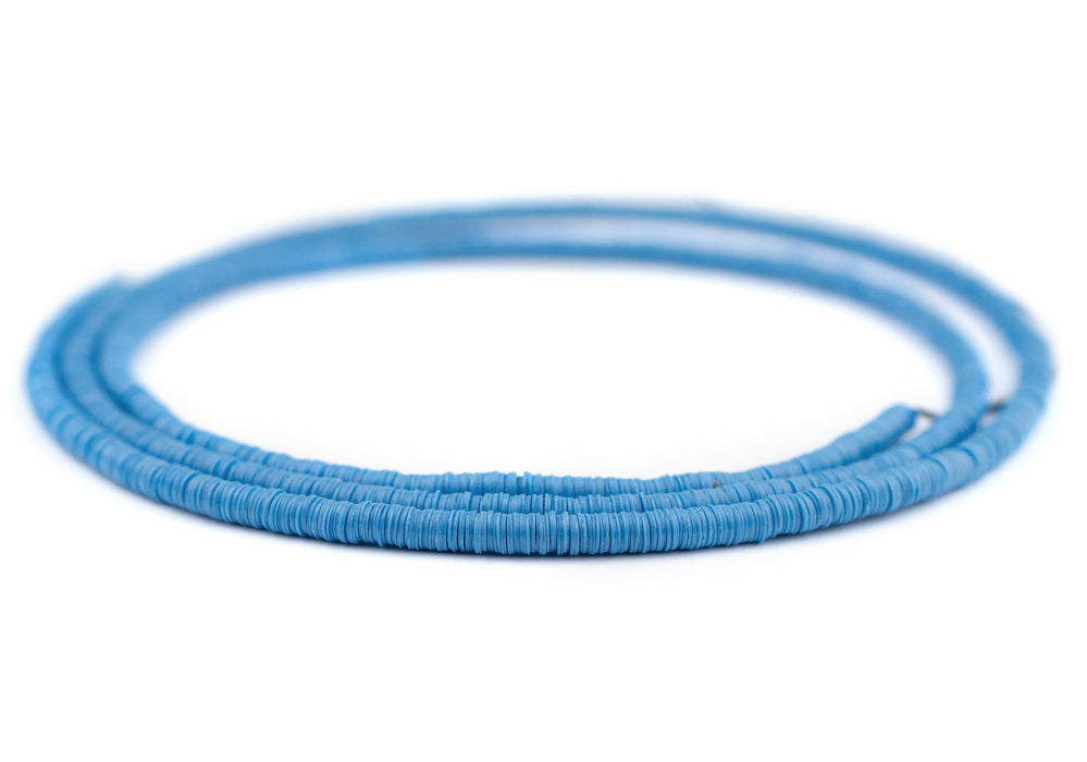 Take a look at this beautiful strand of African vinyl beads in a blue color. Beads such as these are found in Ghana and Nigeria where they are sometimes worn as waist beads. Older versions of vinyl beads were said to be made from recycled phonograph records. This strand measures approximately 30" long with individual beads measuring 0.28 x 4mm. These beads are light and fun to wear and also versatile for jewelry designs. Each strand is sold individually.