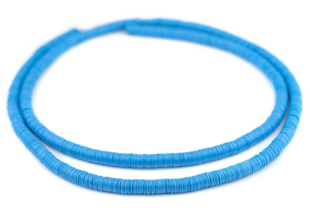 Take a look at this beautiful strand of African vinyl beads in a blue color. Beads such as these are found in Ghana and Nigeria where they are sometimes worn as waist beads. Older versions of vinyl beads were said to be made from recycled phonograph records. This strand measures approximately 34 inches long with individual beads measuring approximately 0.28 x 6mm, and a hole size of approximately 1mm. These beads are light and fun to wear and also versatile for jewelry designs. Each strand is sold individually. Available in a variety of sizes and colors. Mix and match to create your own medley!