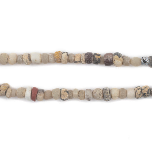 Djenne beads are found in various archaeological sites in sub-Saharan Africa. Djenne Beads are believed to come from the ancient city of Djenne-Djeno. Djenne-Djeno is often compared to the cities of ancient Egypt. The city of Djenne-Djeno was located in the African state of Mali. According to archeological research, Djenne was originally settled around 250 BC. At the time the area where Djenne-Djeno was settled was an oasis. The land surrounding Djenne was comprised of grassy plains, lakes, and rivers making it very easy for local farmers, artisans and citizens to live a sustainable lifestyle. One of the main crops that was produced in Djenne was rice. The people of Djenne had a very prosperous period for their city and community until about 1000 CE. Its believed that around 1000 CE a lot of the cities main sources of water and fertile soil had been overused. Due to this, the population ended up migrating to different areas across Africa.