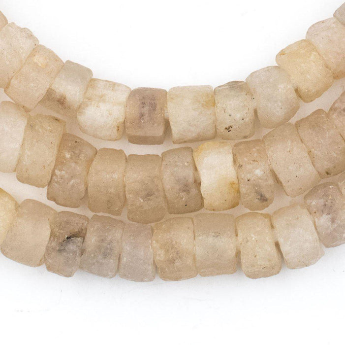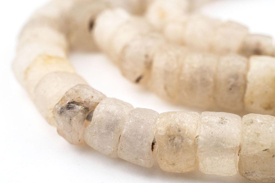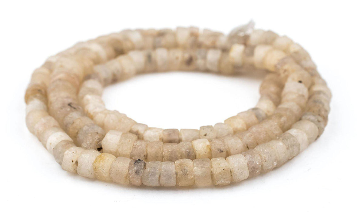 Admire this exceptional strand of stone beads from Mali. West Africa has a long history of stone bead-making stretching back to ancient and even prehistoric times. While the exact age of these beads is not known, the design and material suggests significant age. Look carefully and you will see the unique translucence of the quartz. Each long strand is approximately 33 inches in length. Each strand is unique and may vary slightly from strand pictured. Limited Supply.