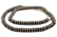 Great strand of prayer beads from Mali. These ebony wood beads have been individually inlaid with metal around the border. Each strand may show some minor variation and is unique.