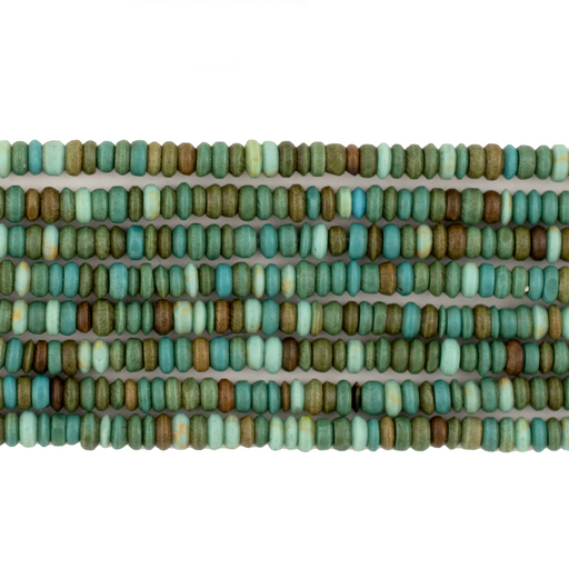 View full detailsThese beautiful tiny heishi beads are made of natural turquoise from Afghanistan. Each unique strand is about 15-16 inches long with beads measurin...