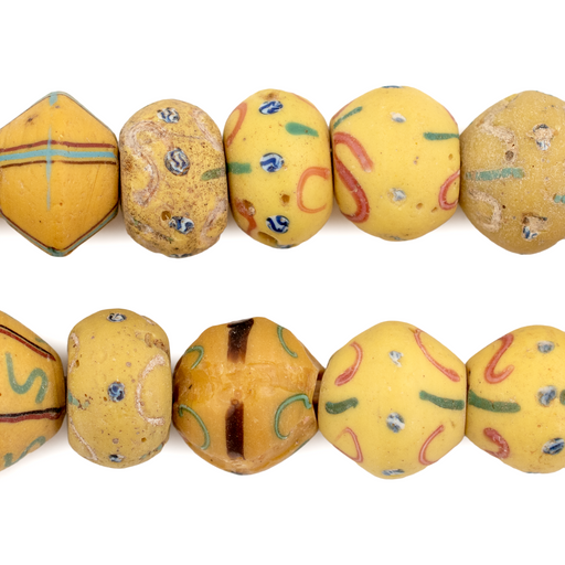 Ghana is home to the largest bead markets in Africa. Below are African beads imported from Ghana. Trade beads have a long history in the West African country of Ghana. In fact, Ghana beads were once a form of national currency and were used to purchase many different kinds of goods including alcohol, slaves, and even textiles. The production of beads in Ghana was first documented over 200 years ago however evidence of bead production extends over two thousand years. Due to their use in trade, beads in Ghana may have a wide variety of origins that trace ancient and modern trade routes including Europe, the Middle East, and Asia. Modern Ghana overlaps with the terrain of the ancient Ghana Empire.