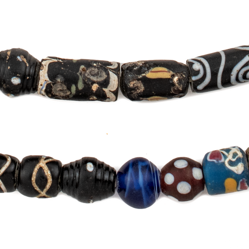 View full detailsTransport yourself back in time with this exquisite strand of Assorted Black Antique Venetian Mixed Trade Beads from Ghana. These glass beads, incl...