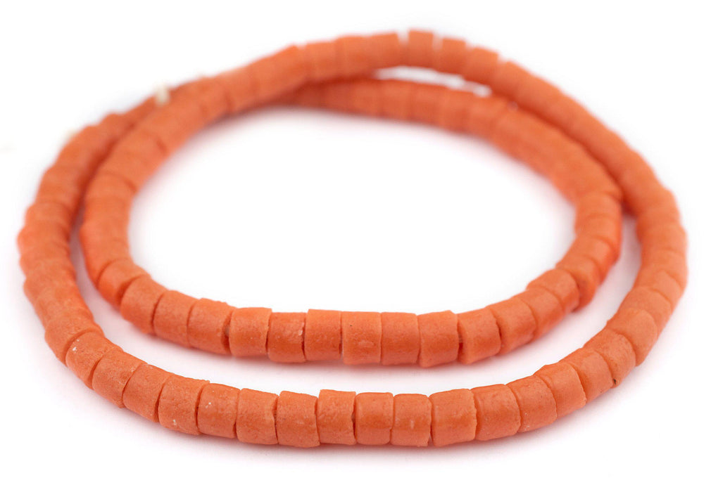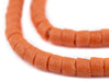 Checkout this beautiful strand of orange sandcast beads from Ghana, West Africa. The process of making these beads is unique to Africa and has been used for over 1000 years. Pulverized glass of various colors is poured into a clay mold, using a cassava stem for the bead's hole. The mold is placed in a furnace and heated until the glass particles congeal without actually melting and the stem burns out. The Ghanaians have been making beads in this manner since the 1600s.