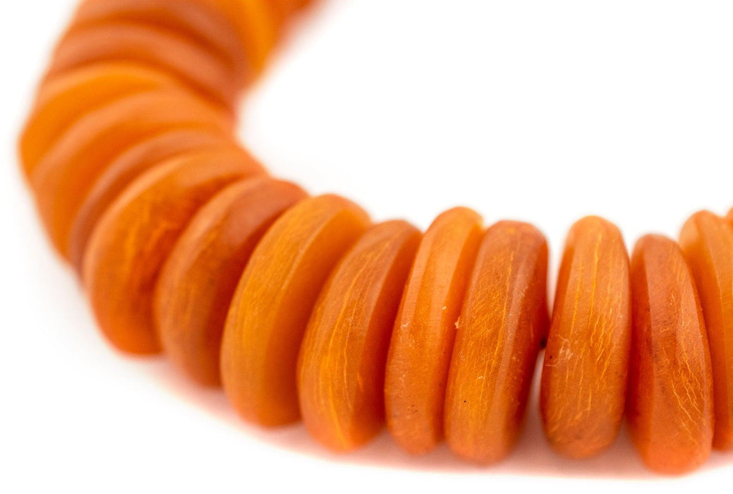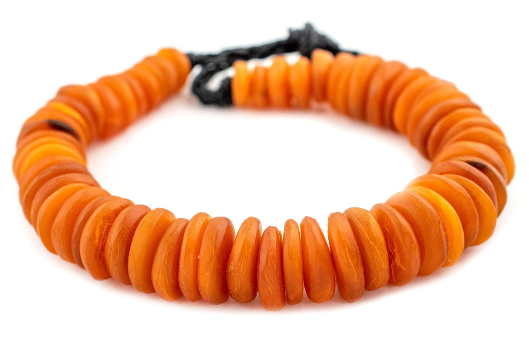 These amber colored beads are made in Morocco from recycled sheep horn. These beads have a more rustic texture than some of our other horn beads which gives them an even more earthy feel. The vibrant colors are sure to make your jewelry a statement. Bead sizes range from 5-10 x 17-26mm, with a hole size of approximately 1mm. Each strand is unique and may vary slightly in size and color from strand pictured.