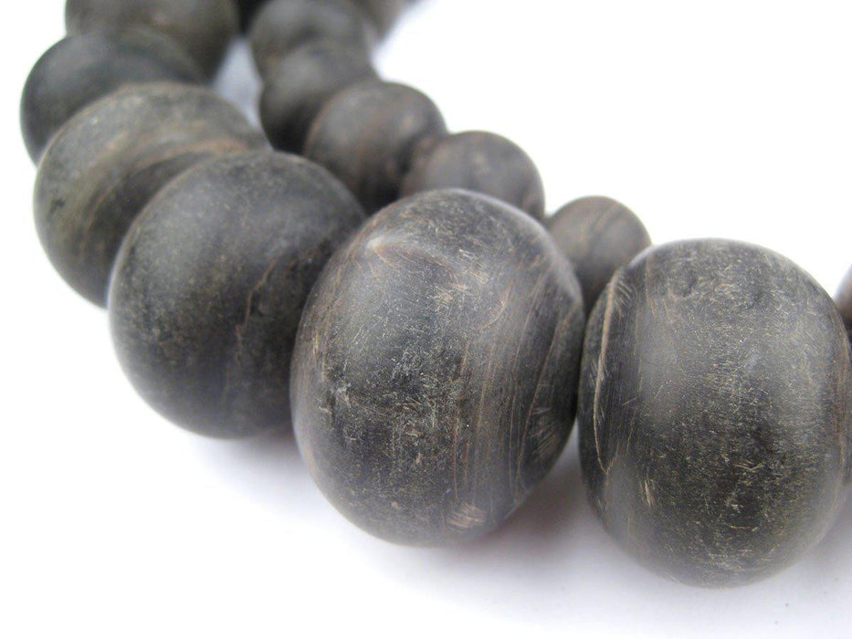 Admire this unusually large strand of jumbo horn beads from Togo. Graduated strands such as these are extremely difficult to find, particularly with such large centerpiece beads. Beads measure approximately 17-30 x 22-37mm with a hole size of 3-5mm. You will receive approximately 35 beads per 36" strand. These beads are an authentic Togo handmade product.