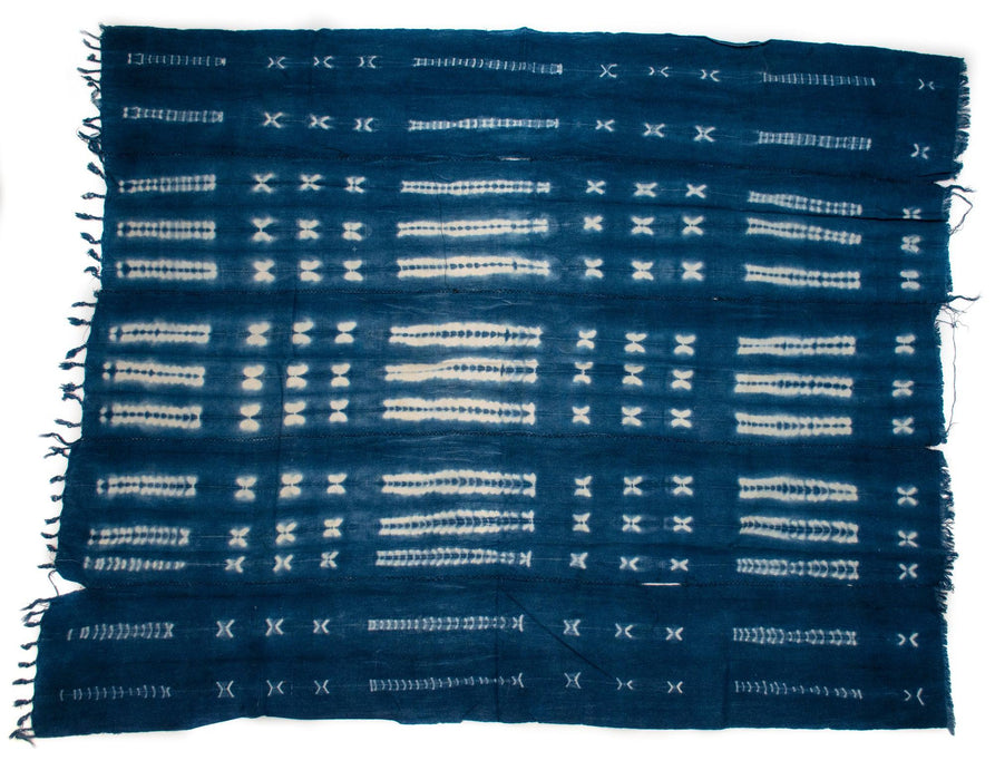 Admire the rich blue beauty of this authentic African Indigo Cloth. Woven from cotton, handmade textiles such as this play a central role in the artistic tradition of many West African countries where they are traditionally worn as clothing. Indigo cloths can be found in a number of African countries including Ghana, Togo, and the Ivory Coast. Look carefully and you will see that each piece has its own unique and distinctive pattern. This soft and versatile fabric can be used for all kinds of unique design projects. Use it as a table cloth, wall hanging, or simply as a colorful accent for your favorite room. Cloths vary in size however they generally measure between 43-51 inches wide x 63-71 inches long. Each piece is truly one of a kind. You will receive the exact cloth shown in the photograph!