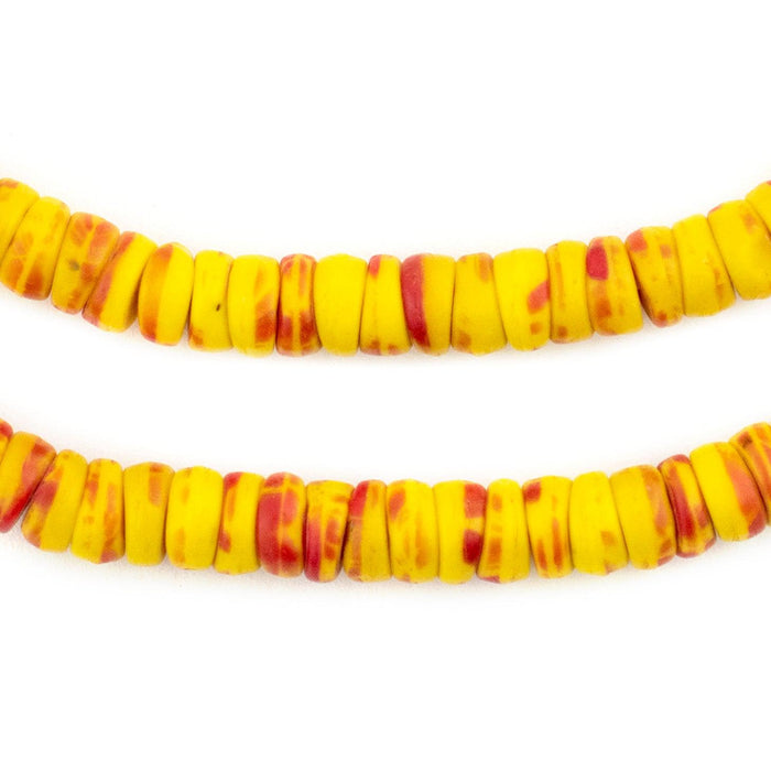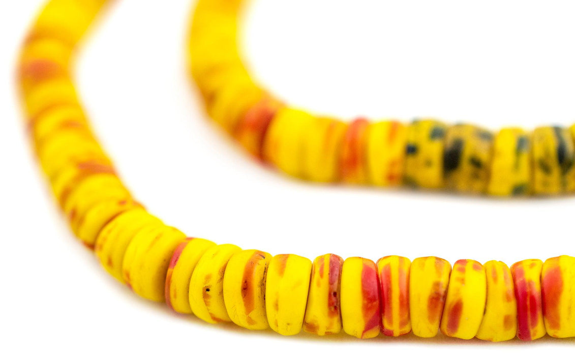 The unique look of kakamba beads is easily recognized among the beads of Africa. Originally produced in former Czechoslovakia, these beads are made using a special process whereby glass is pressed in a mold. Also known as prosser beads, these fun vintage African trade beads come in a variety of different colors and combinations. Each strand is unique. You will receive the exact strand shown in the photo. Bead and strand dimensions are approximate and may vary slightly. Get yours today!