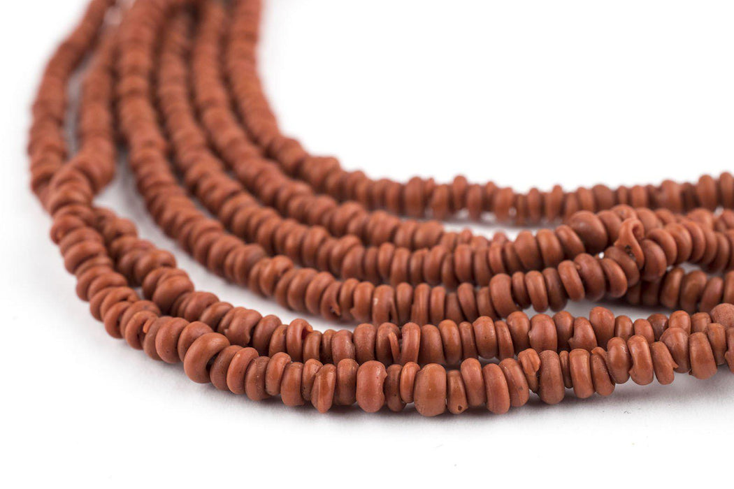 These orange java glass heishi beads are handmade by independent artisans on the island of Java. Pay close attention and you will notice a very special heishi shape, coupled with a beautiful texture. These beads are perfect to use as in your ethnic jewelry designs. These beads measure approximately 1 x 3-4mm, with a hole size of 2mm. Each strand measures approximately 23 inches in length. Multiple strands pictured. Each strand sold individually and may vary slightly in color. Great quality at a wholesale value!