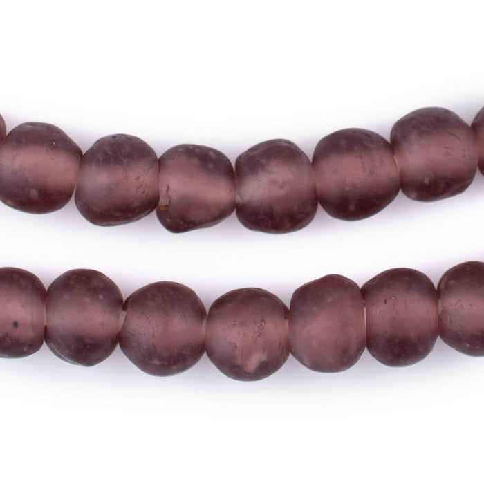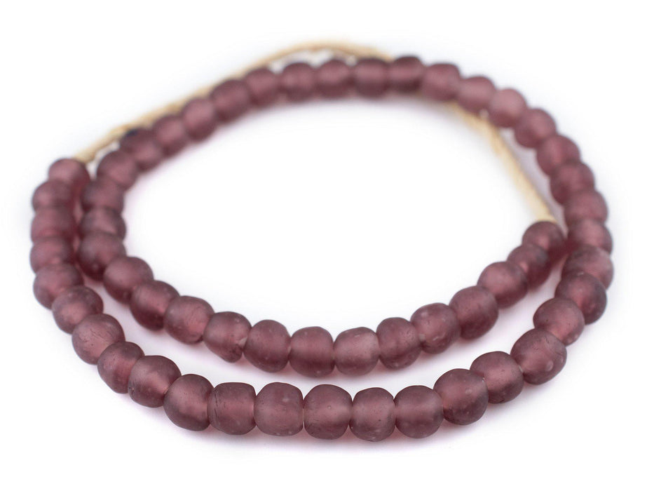 Recycled glass beads are a type of indigenously produced African bead from Ghana West Africa. These beautiful tangerine color recycled beads are made using an old method that has been used for centuries. The glass itself is derived from a variety of recycled sources including old beverage and medicine bottles. The procedure for making the beads consists of a number of steps whereby powdered glass is poured into molds of clay and baked in a specialized oven. These beads are produced in large part by the Krobo tribe and through recycling glass are environmentally friendly.