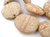 This beautiful strand of large Mali Terracotta Medallion beads is handmade with each bead individually inscribed with traditional patterns. It is made by the Dogon tribe of Mali. Each strand may show slightly different designs. Great for jewelry-making or even as a unique wall hanging!