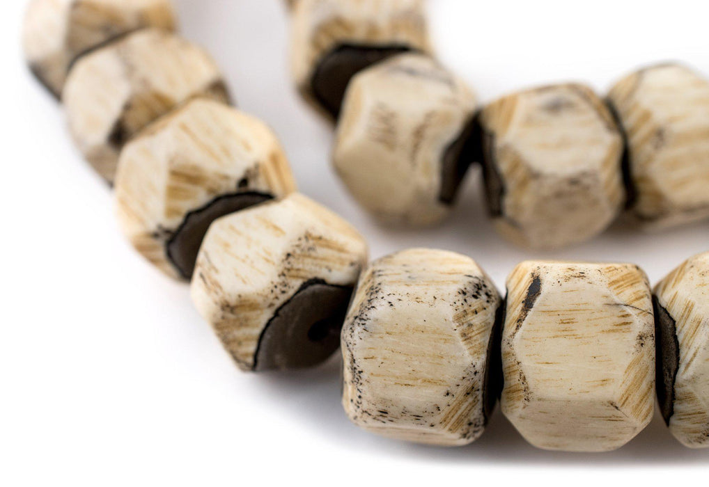 Faceted Grey Bone Beads (14x17mm)