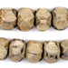 These unusual bone beads have been fashioned in a fun and whimsical design. Handcrafted by and artisan, each bead has been individually faceted and polished to a smooth and time-worn feel. Individual beads measure approximately 13-15mm wide by 17-22mm in diameter and nicely finished with a woven cord. Shade of grey may vary. Some strands may have button clasp. These beads will make a versatile addition to your design projects!