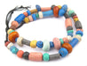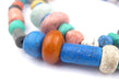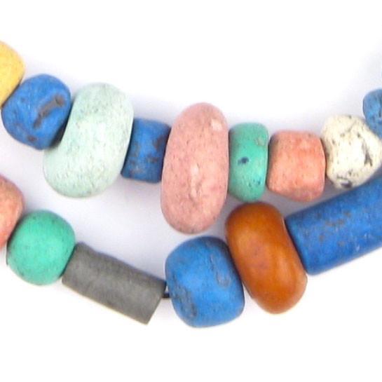 This colorful medley of pottery beads is characteristic of Berber jewelry from the Atlas Mountains of Morocco. Individual bead sizes may vary but measure approximately 9-22mm diameter by 8-24mm wide. This long strand contains an assortment of different beads including round, elongated, chunk, disk beads and an occasional amber resin beads as well. Each strand is unique and may vary slightly from picture shown. Limited supply!