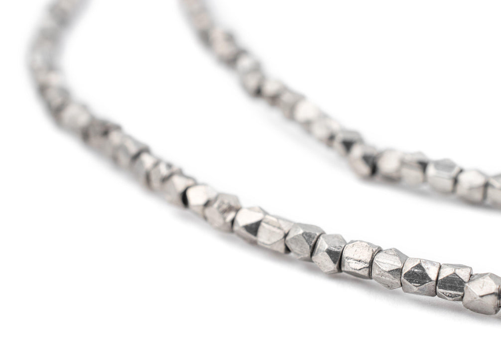 Dark Silver Faceted Tiny Diamond Cut Beads (2mm)