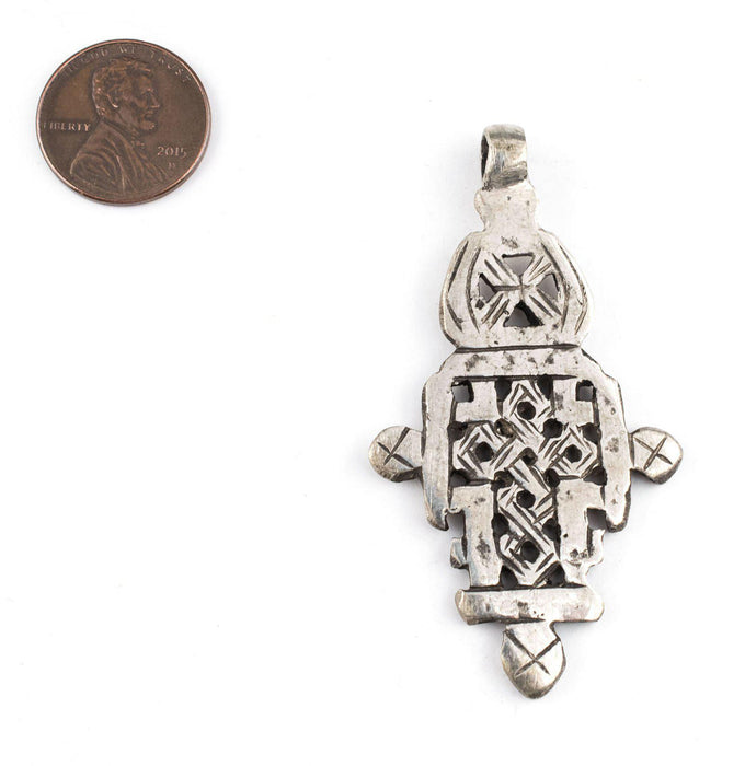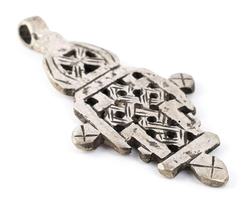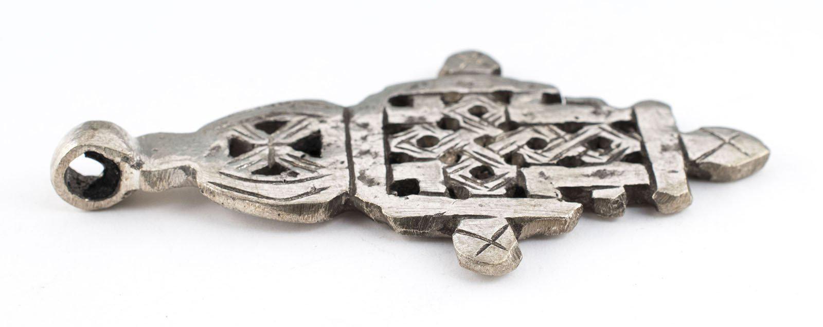 Designed in Ethiopia, this Coptic Cross pendant is intricately crafted, showcasing exquisite artistry and cultural significance. The pendant can be worn as-is, simply by running a chain through it. The design on the back of the cross is similar to what is shown on the front so these pendants are basically double-sided! This cross measures approximately 66 x 37mm. Each pendant is unique and may vary slightly from picture.