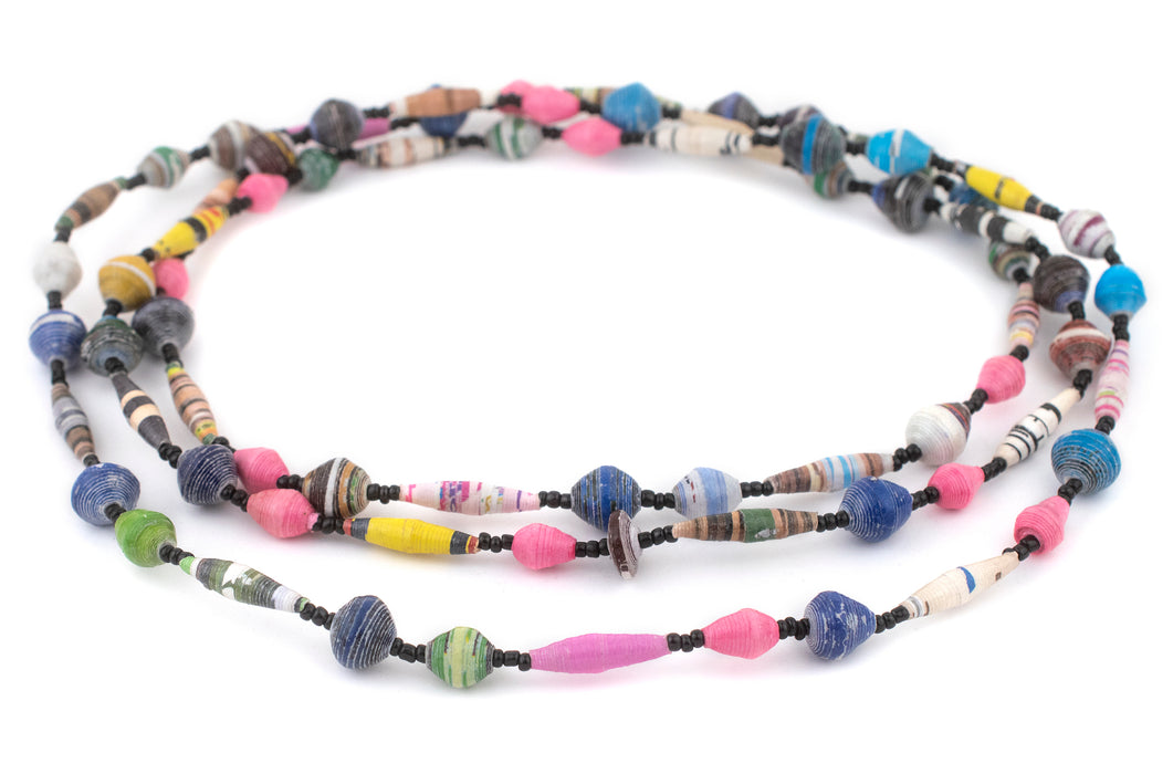 Entebbe Medley Recycled Paper Beads from Uganda (Long Strand)