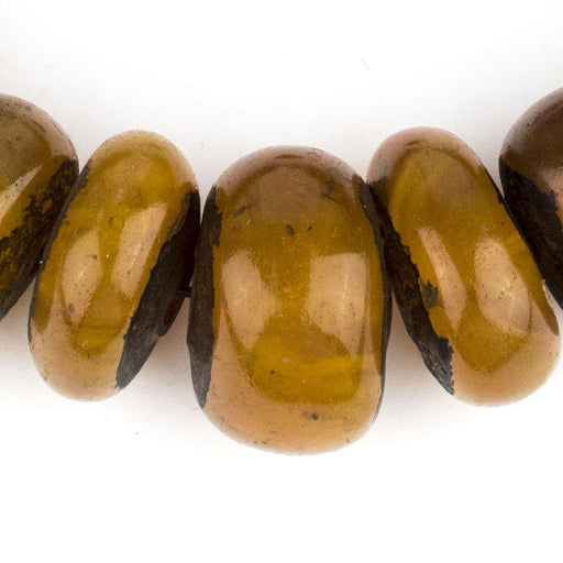 The indigenous Berber tribes of the Mahgreb, North Africa are widely recognised for their exquisite silversmithery and elaborate woven textiles, however, they are also known for their production of semi-precious amber, Trade Beads used as currency along the trans-Saharan trading route. Valued for their unrivalled beauty and exuberant colors, Moroccan Amber Beads hold great historical significance in the eyes of many Berber tribespeople, including the belief that amber contains the spirits of various ancestors. As such, many families continue the age-old tradition of gifting amber necklaces to their children as a family heirloom. There is a common misconception that Moroccan Amber Beads are semi-precious stones, when in fact they are produced from the natural resin of gum trees. Amber itself forms when chemicals within the resin, known as 'terpenes', are broken down, allowing heat and natural pressure to transform the resin into a solid mass. This process of polymerization can take many years, which is why it's not uncommon to find fossilized insects forever frozen in time within some beads. You'll find that most Moroccan Amber Beads are quite rustic in character owing to the humble tools originally used to influence their shape. In fact, most artisans continue to employ the age-old technique of 'amber rolling' against a flat, wet stone to create that aged aesthetic. Contemporary Amber Resin Beads may be made using more modern techniques including the use of newer resins while maintaining the handcrafted qualities and timeless tradition of these beautiful beads.