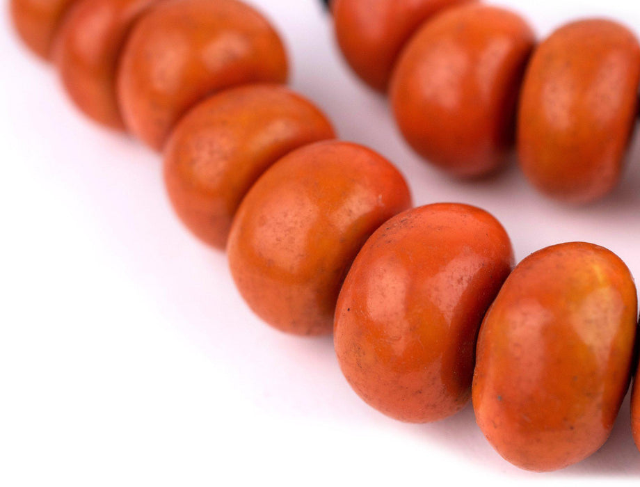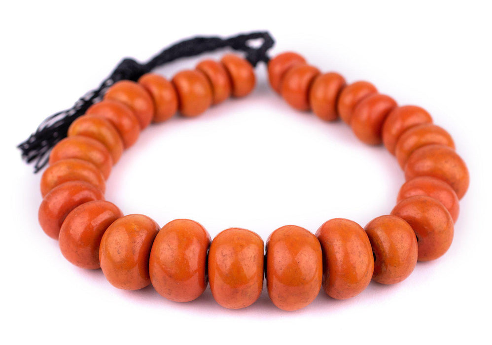 These handmade resin beads are individually polished in Northern Morocco. Made to resemble natural amber, these delightful beads have been nicely arranged in a graduated strand and finished with braided black cord. Bead will vary in size between 16-23mm wide and 25-33mm in diameter. The large hole makes these beads great for leather jewelry or home decor. Each strand is unique and may vary slightly from photo.