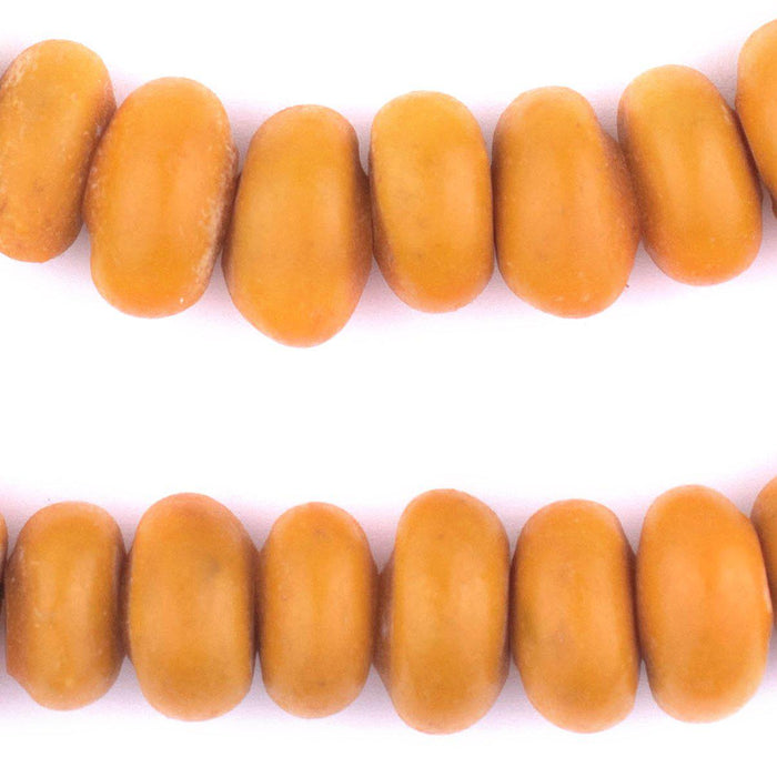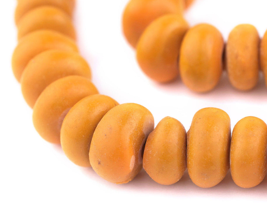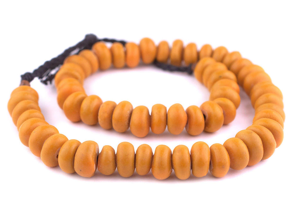 Admire this beautiful strand of yellow resin beads from Morocco. Each bead measures approximately 9-12 x 19-21mm with a hole size of 5mm. Strand measures approximately 30" in length. Shade may vary slightly from photo. Great find!