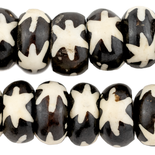 These unusual African beads are made by inlaying white bone into a wooden base. Each bead is individually handmade and unique. Use them for jewelry...