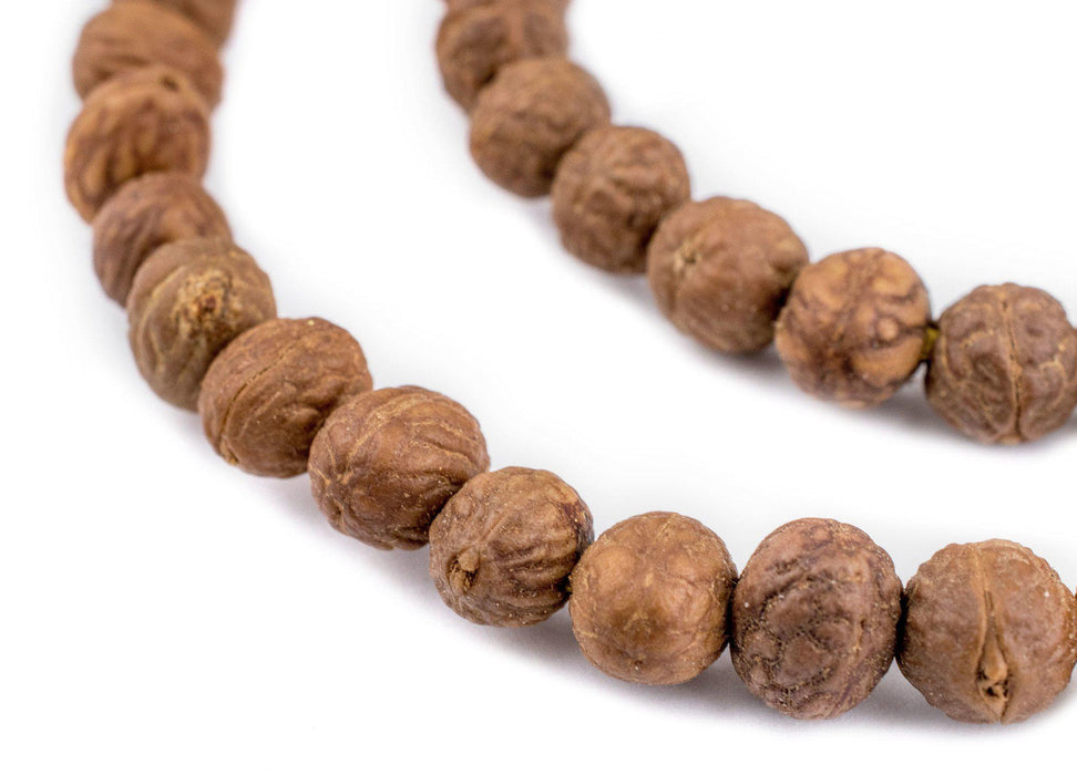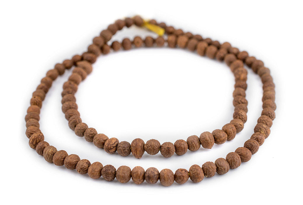 These delightful brown beads are made from the natural seed of the Bodhi Plant. The Bodhi Tree is significant in Buddhism due to it association with Buddha. These seeds are often used to make Malas for mediation by the faithful. Each seed has been carefully drilled and strung on a durable cord. Individual beads measure approximately 8mm wide and 9mm diameter.