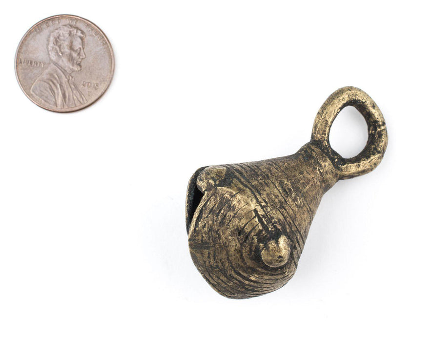 This brass bell is said to have been used and passed down generations during its lifetime in Nigeria. Crafted by an expert craftsman many decades ago, it's impeccably smooth finish is a testament to its usage. Each bell measures approximately 34 x 29mm in size, with a generous hole size of 9mm. Add this unique pendant to your necklace to make a statement!
