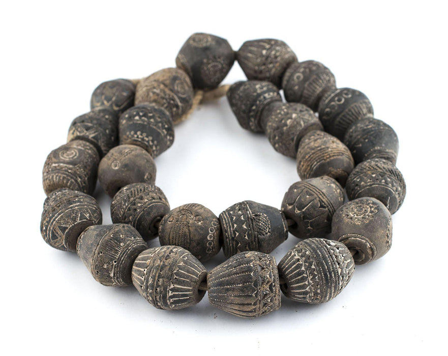 Old Irregular-shaped Mali Clay Spindle Beads (33x28mm)