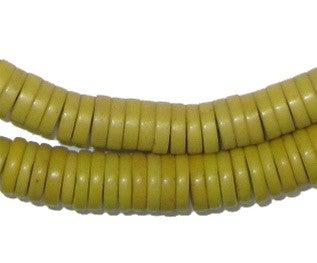 One of the most well known types of Prosser Beads is the Kakamba Bead. Kankanmba Beads are typically opaque multi-colored trade beads that today are sourced primarily from West Africa. The Kancamba can be found in most colors of the rainbow both as solid colored beads but also with a freckled or mottled patterning of combinations of colors. Several shapes of the bead are also available including small thin cylinders and larger more flat varieties. Other types of Prosser Beads include Sliced Blue, Sliced Green, and Sliced Yellow Prosser Beads.