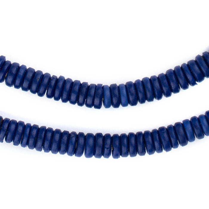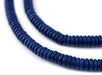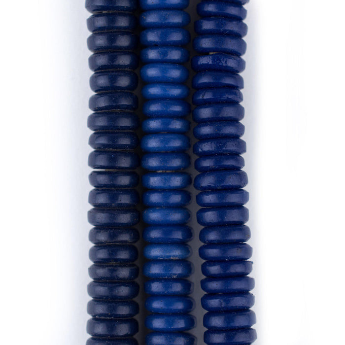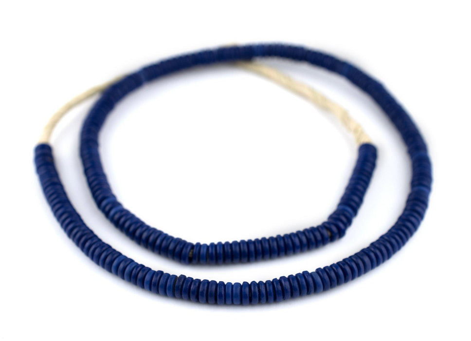 These versatile blue beads are smooth and worn to touch. Found in Nigeria, West Africa, vintage Czech beads such as these were made in Central Europe during the 19th and 20th centuries and exported to Africa. Each 24" strand contains approximately 220 beads measuring 2mm wide by 7mm diameter. The generous 2mm hole size make them well suited for use with thicker cord such as leather. Each strand is unique and shade of blue may vary slightly as illustrated in photo.