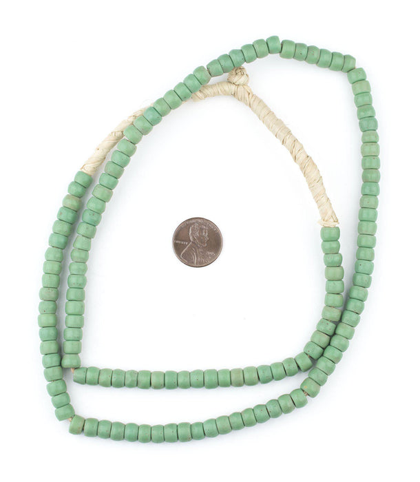 Sliced Prosser Beads, otherwise known as button beads, get their name from their unique shape. These beads originated in the former Czechoslovakia and were made by pressing molten glass. They have been traded in Africa since the late 1800's early 1900's. Several strands are available and may vary slightly in size or color from the one pictured. Each bead measures approximately 5 x 7mm, with strands measuring approximately 30" long. This would make a beautiful addition to any beader's collection. Get them before they are gone!