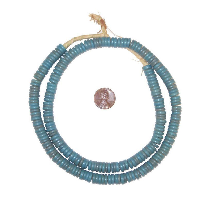 Sliced Prosser Beads, otherwise known as button beads, get their name from their unique shape. These beads originated in the former Czechoslovakia and were made by pressing molten glass. They have been traded in Africa since the late 1800's early 1900's. There may be slight variation in shade between photo and strand received. Up to ten percent of beads on any given strand may be an alternate color such as brown or pink. Get yours before its gone!