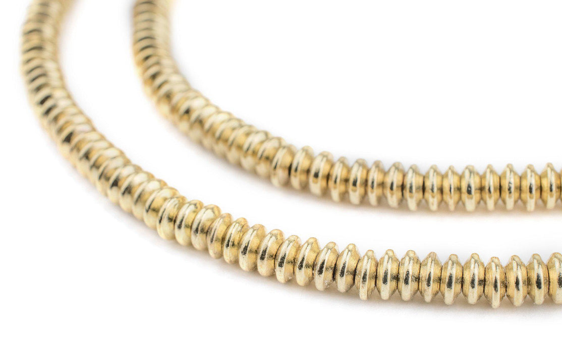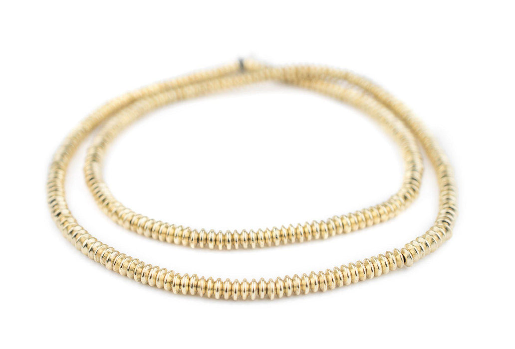 This beautiful strand of high quality, gold saucer beads measures approximately 24" in length. Individual beads measure 2 x 5mm in size, with holes measuring 2mm. Each strand includes approximately 290 beads. These highly versatile beads make great spacers, or may be used to accent your unique beaded designs. Feel the solid weight of these beads in your hands, and you'll surely appreciate their fine quality.