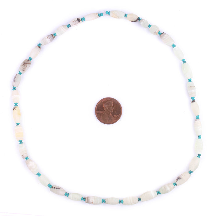 Indulge your eyes in these beautiful serpentine beads brought to you from the mountainous wilds of Afghanistan. The mineral rich landscape of Central Asia has been a source of treasured stones for at least three millennia. These delightful, handcrafted gemstone beads come in a special oval shape, measuring approximately 10-11 x 5-6mm, with holes measuring 1mm. Each strand is approximately 16" long. Serpentine is a special stone that has been valued since pre-historic times and has oftentimes been used in carvings and other ornamental objects. Serpentine is known in many cultures as associated with wisdom and is believed to imbue this quality. Multiple strands may be pictured. Each strand sold individually. Add these beads to your collection today!