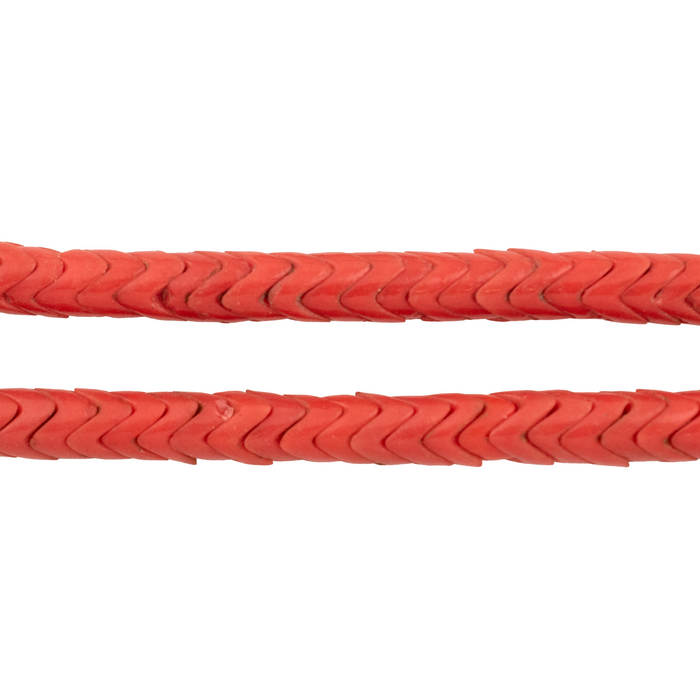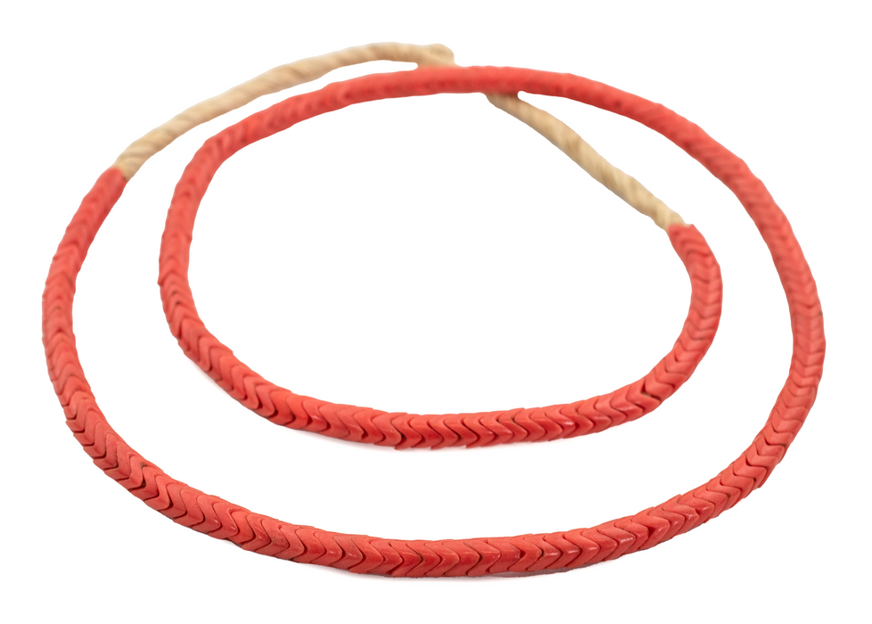 This strand of interlocking Czech glass beads is called "SNAKE" trade beads because of its similarity to the snake vertebrae. They date back from the early 1900's. These beads have been molded and the strand is in pretty good condition. It has a coral color and is great to be used as spacers. The beads are about 6mm in diameter, and tones may vary slightly. Bead count per strand will vary between 160-190 beads / strand.