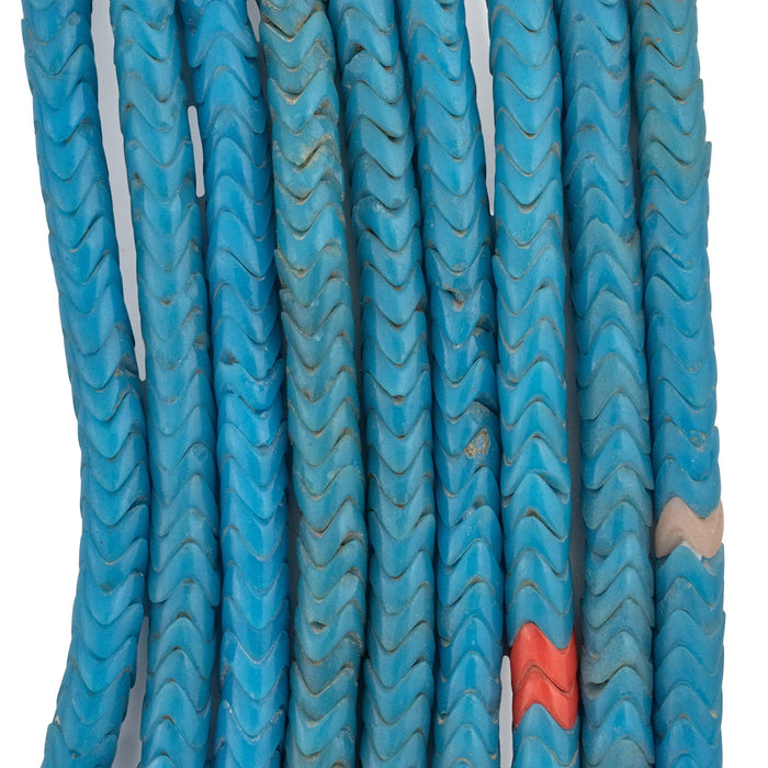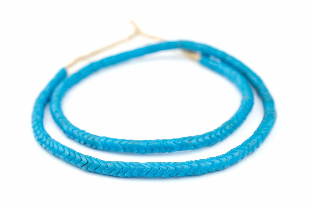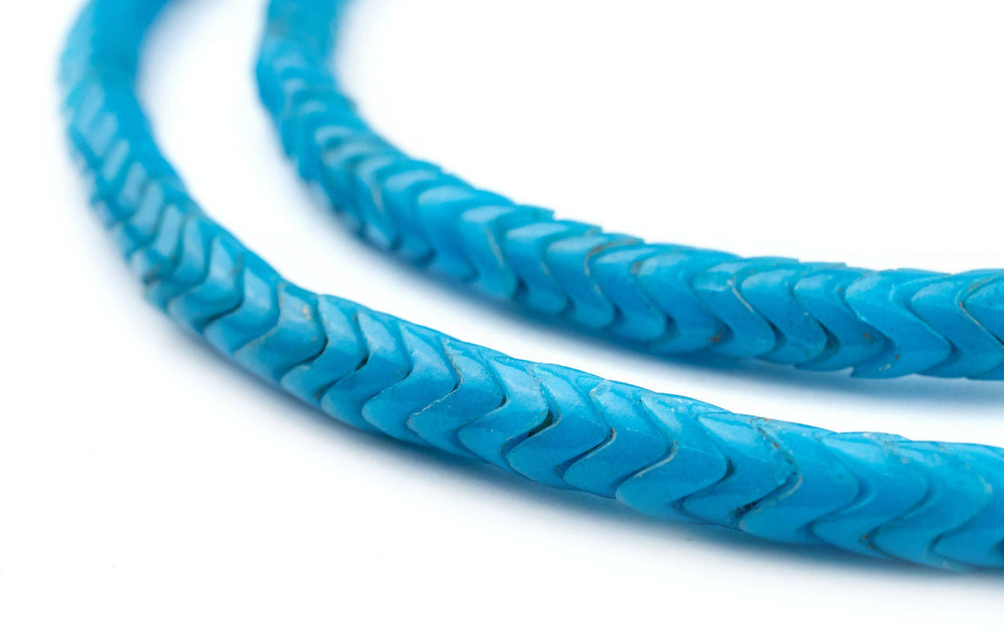 This strand of interlocking Czech glass beads is called "SNAKE" trade beads because of its similarity to the snake vertebrae. They date back from the early 1900's. These beads have been molded and the strand is in pretty good condition. It has a nice turquoise color and is great to be used as spacers. The beads are 5mm in width, and about 6mm in diameter. This is a vintage item. Each strand is unique and may vary slightly from photo.