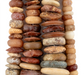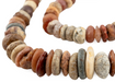 These old stone beads are both colorful and unusual. Natural stone was among the earliest materials used by ancient cultures to make beads for personal adornment. Beads such as these are discovered in the ground where they have sometimes laid undisturbed for hundreds if not thousands of years. These specific beads were found in Mali West Africa. Each graduated strand will consist of a unique assortment of sizes and shapes and may include stones such as Carnelian, Jasper, Rock Crystal, Quartz, or other minerals. Each strand measures approximately 34" long with individual beads 5-11 x 12-24mm in diameter. Each strand is unique and may vary slightly from photo. Please inquire in advance if you have special requirements. These beads are truly one of a kind!